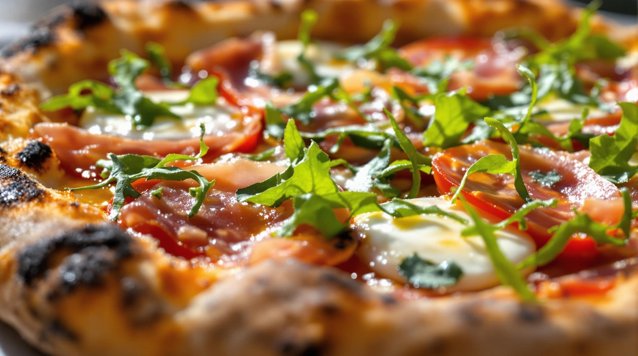 Tomate fresco, Mozzarella, Rucola, Presunto