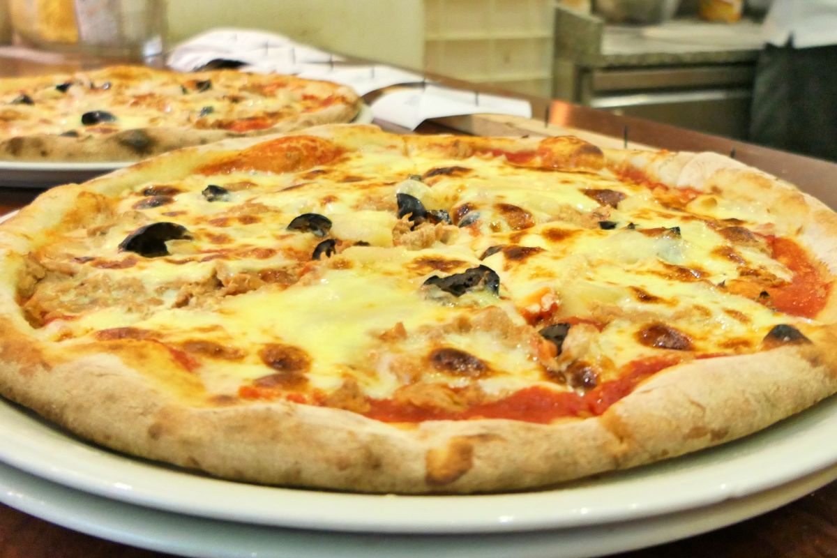 Molho de Tomate, atum, mozarela, orégano, azeitona preta, manjericão, parmesão, azeite virgem